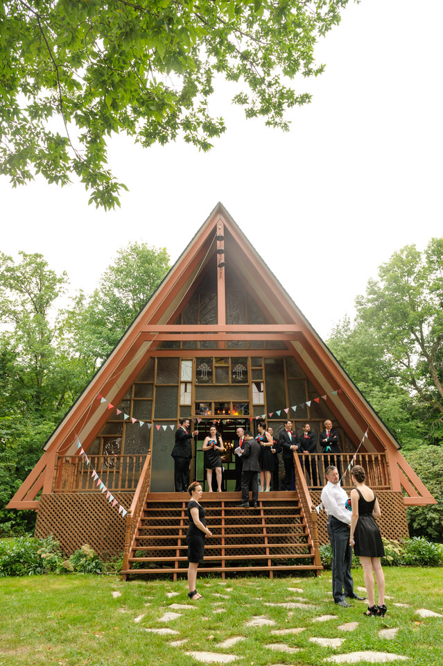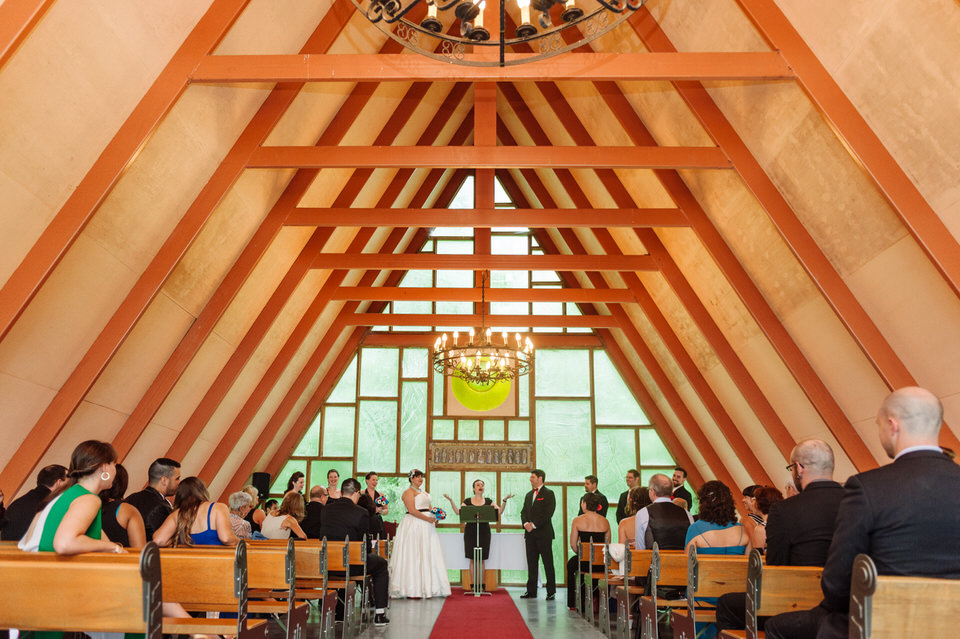 The wedding was held at the Hotel Trois Tilleuls, a gorgeous venue along the Richelieu river, south of Montreal. The wedding ceremony took place inside the simple A-frame wedding chapel on the hotel grounds.