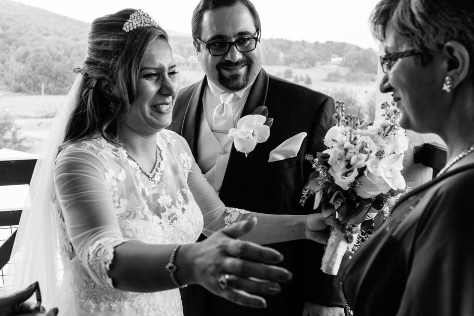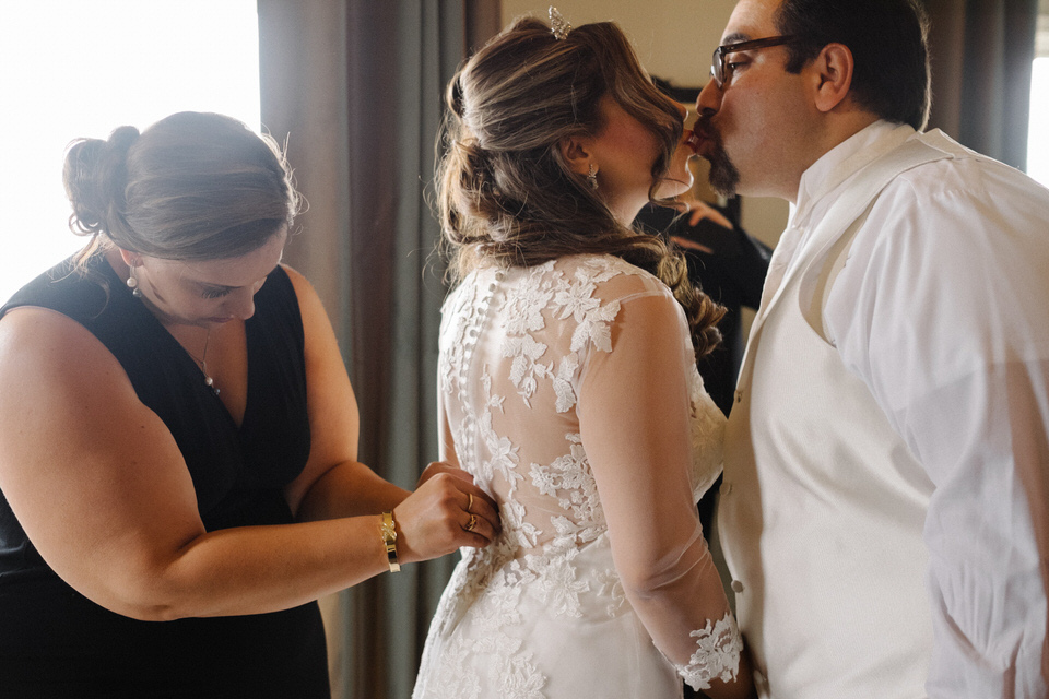 Everything, from the preparations to the ceremony to the party, happened in one location, the Hotel Chateau Bromont, making this wedding so simple to photograph. I used my typical documentary wedding photography approach, though it was also important to the couple to capture beautiful still life photos of the decor details as well as formal family photos.