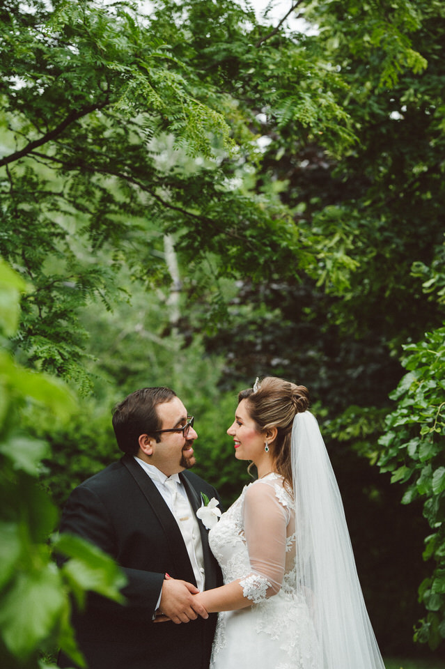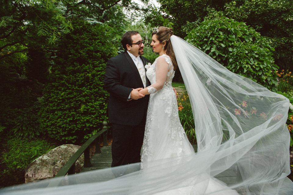 The sun came out in time for a cocktail hour out in the garden, where Hamed and Negar took the time to take photos with all their guests. The Chateau Bromont garden is a lovely landscaped place full of greenery, flowers and a little pond with a footbridge over it.