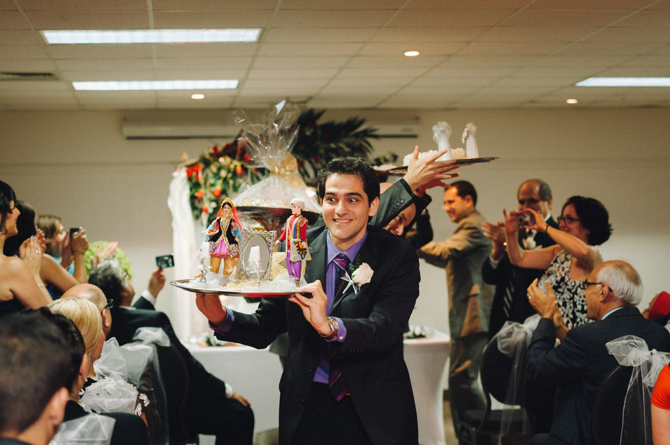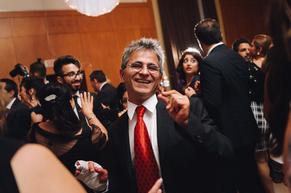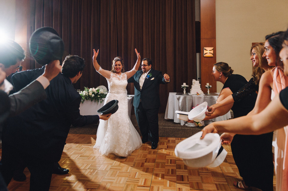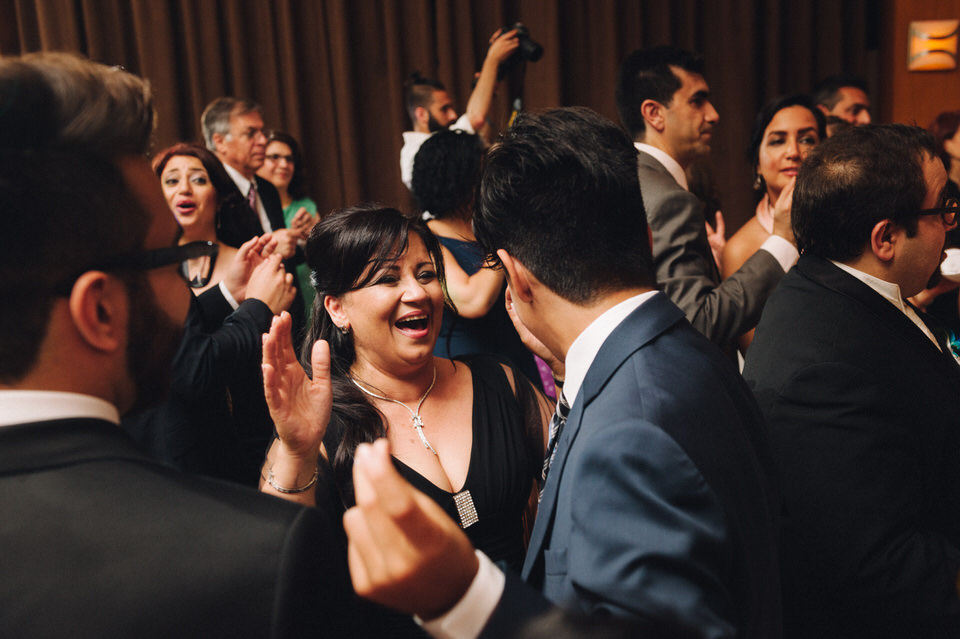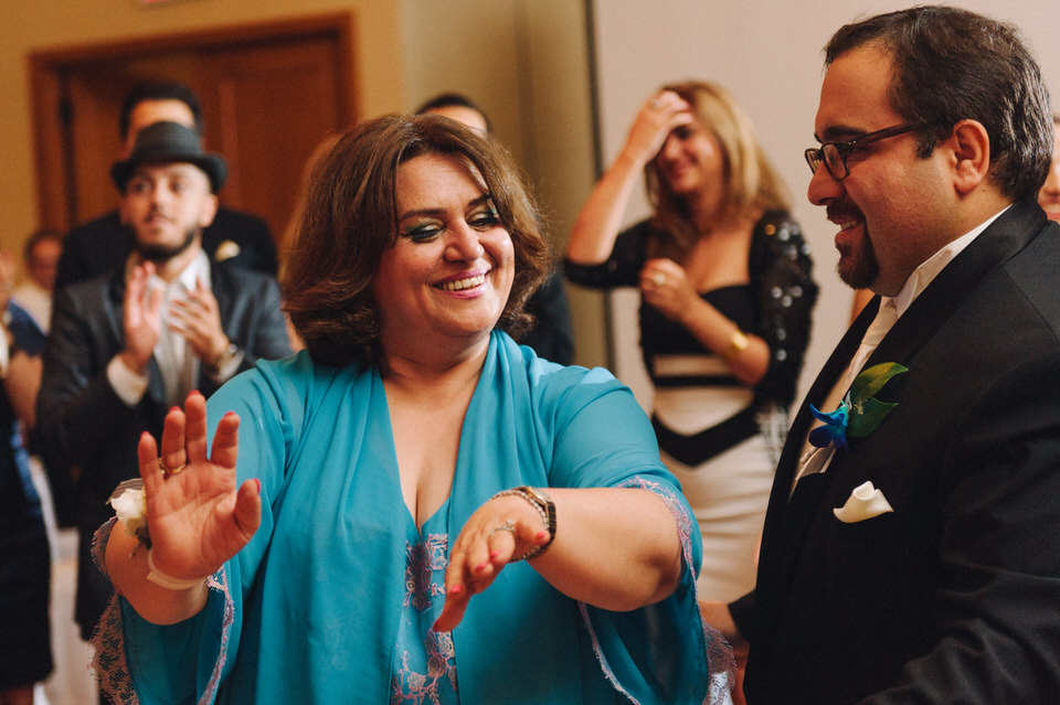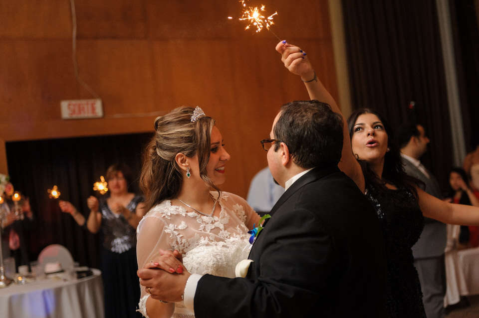 The wedding reception was a time to dance and celebrate. There was so much dancing, including a special knife dance that’s done at Persian weddings. The bride’s sisters, aunts and friends steal away the cake knife and delight in teasing them as they dancing away with it until the groom gives them a enough money for their dance to earn the knife back. The married couple’s first dance was also very special as all the guests lit sparklers to wave around.