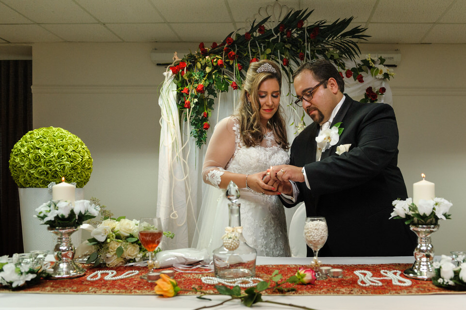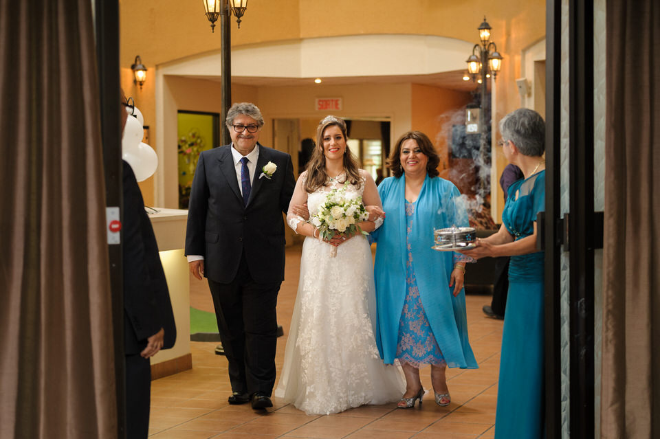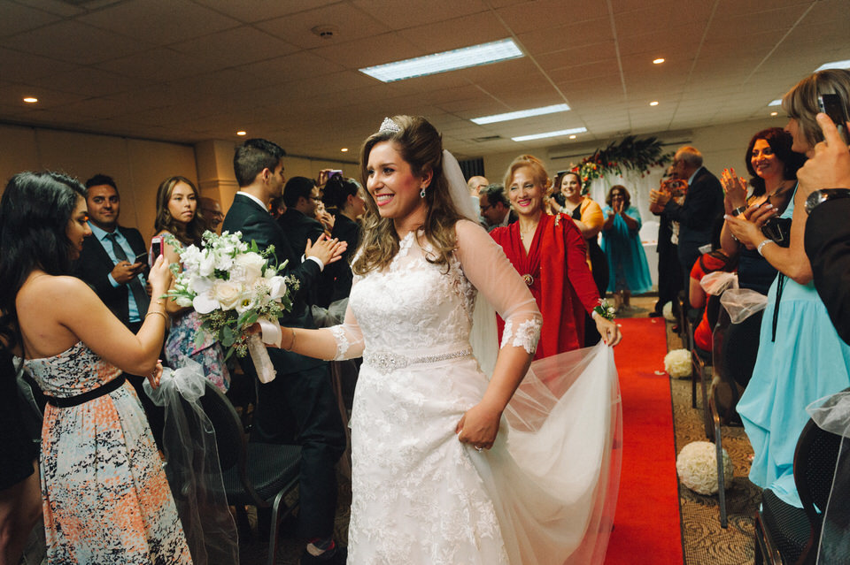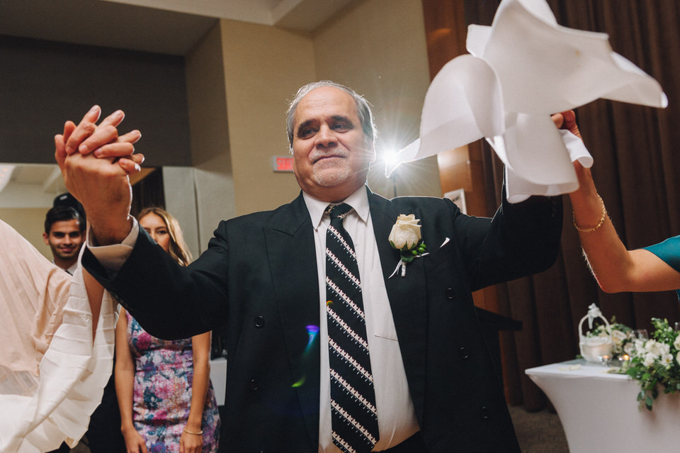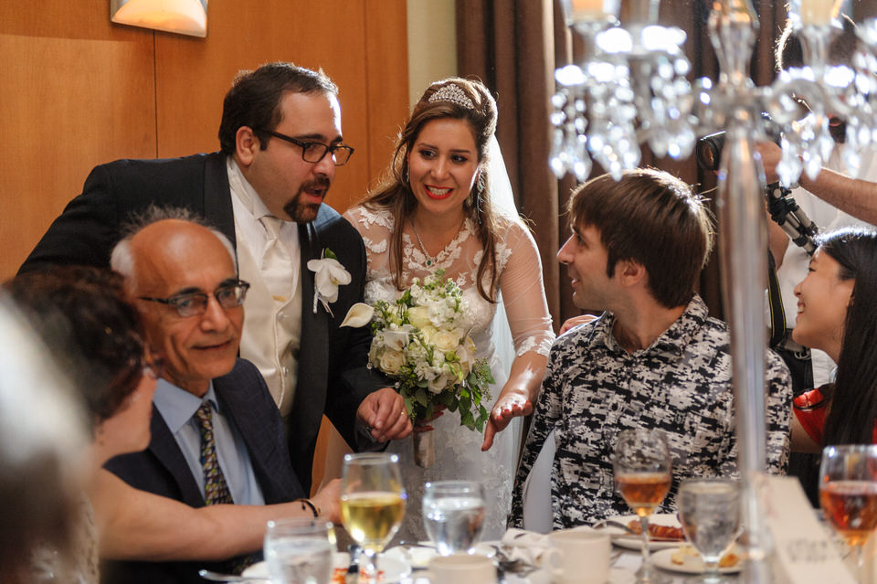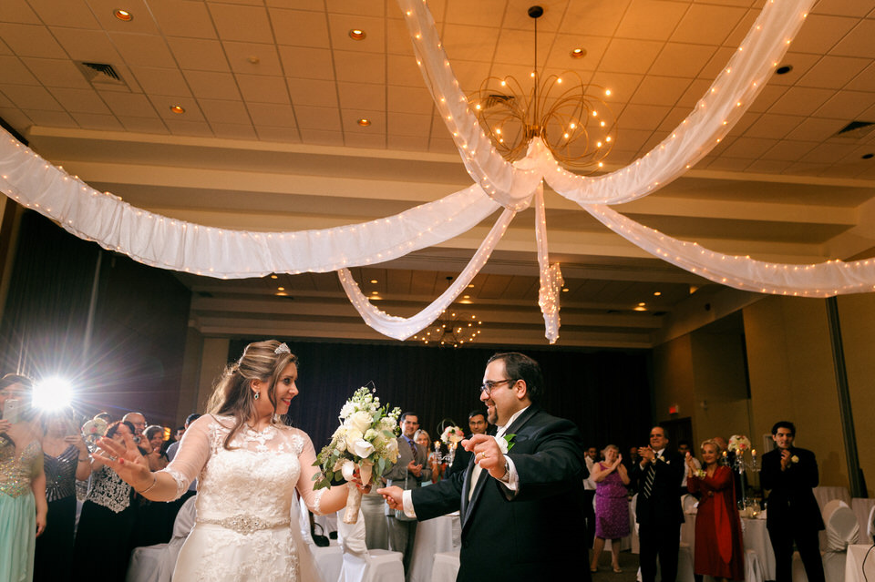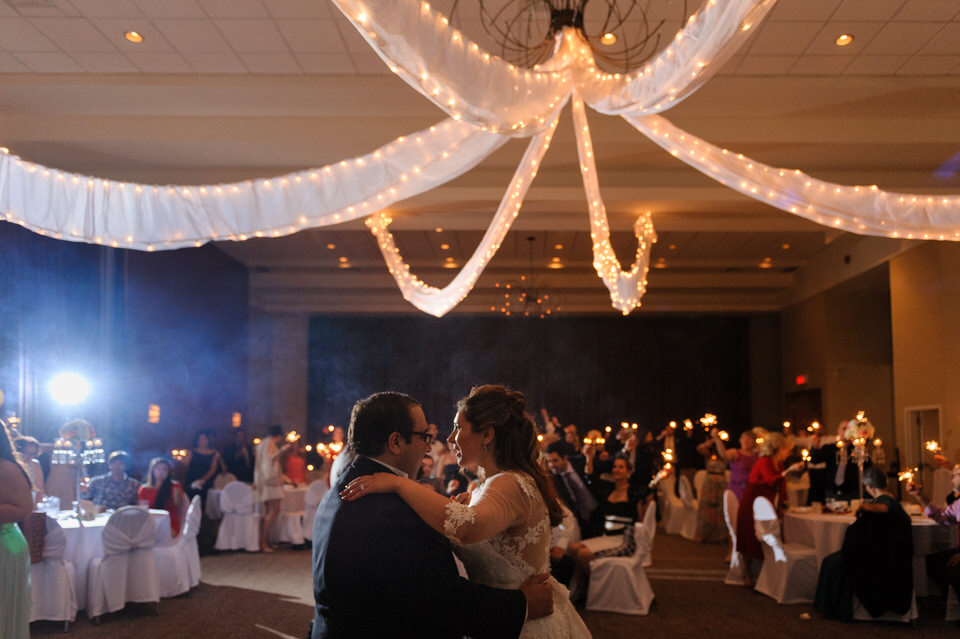The wedding reception was a time to dance and celebrate. There was so much dancing, including a special knife dance that’s done at Persian weddings. The bride’s sisters, aunts and friends steal away the cake knife and delight in teasing them as they dancing away with it until the groom gives them a enough money for their dance to earn the knife back. The married couple’s first dance was also very special as all the guests lit sparklers to wave around.