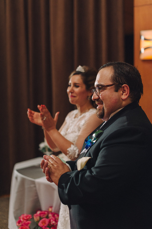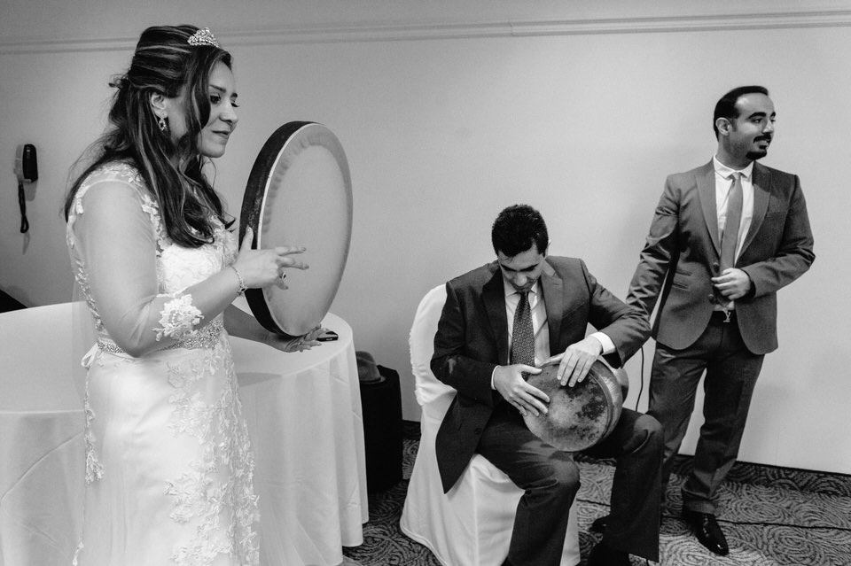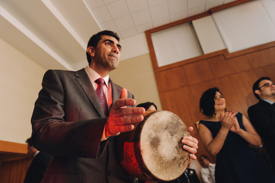 The wedding ceremony had some traditional Persian touches, including a Sofreh table with trays bearing symbolic elements like spices, fruits, and hot coals. It also included live harp music by their officiant Claire Mallet and a reading of an Iranian poem by Maman Ozma. There were some special drum performances as well. I loved getting to see all the wedding customs that were new to me.