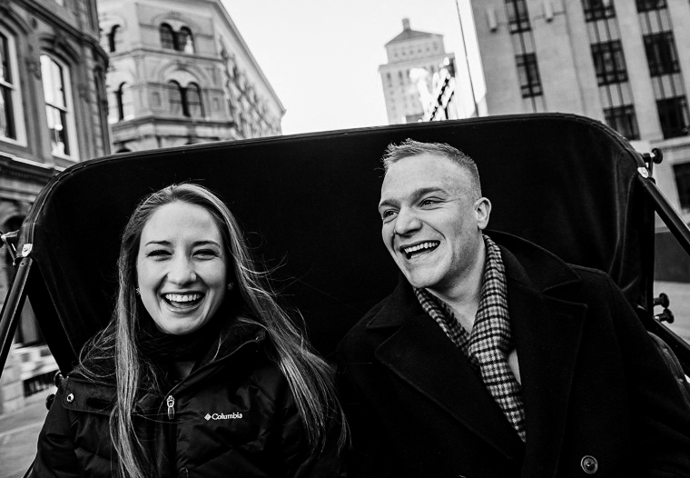 Finally, as we were heading back to their hotel, I let them walk ahead of me down a row of trees to get some photos at a distance. After a few kisses and words of love, Ryan dropped to one knee, pulled out the ring box and proposed. Jordan was blown away, and she said yes!
